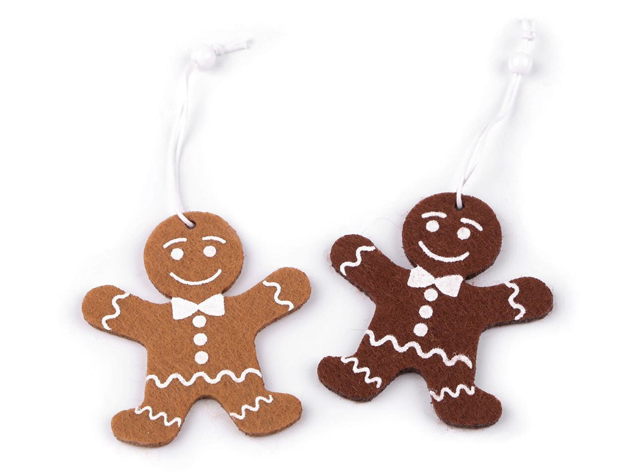 Vánoční perníčky k zavěšení filc - 4 ks - 4 hnědá přírodní perníček