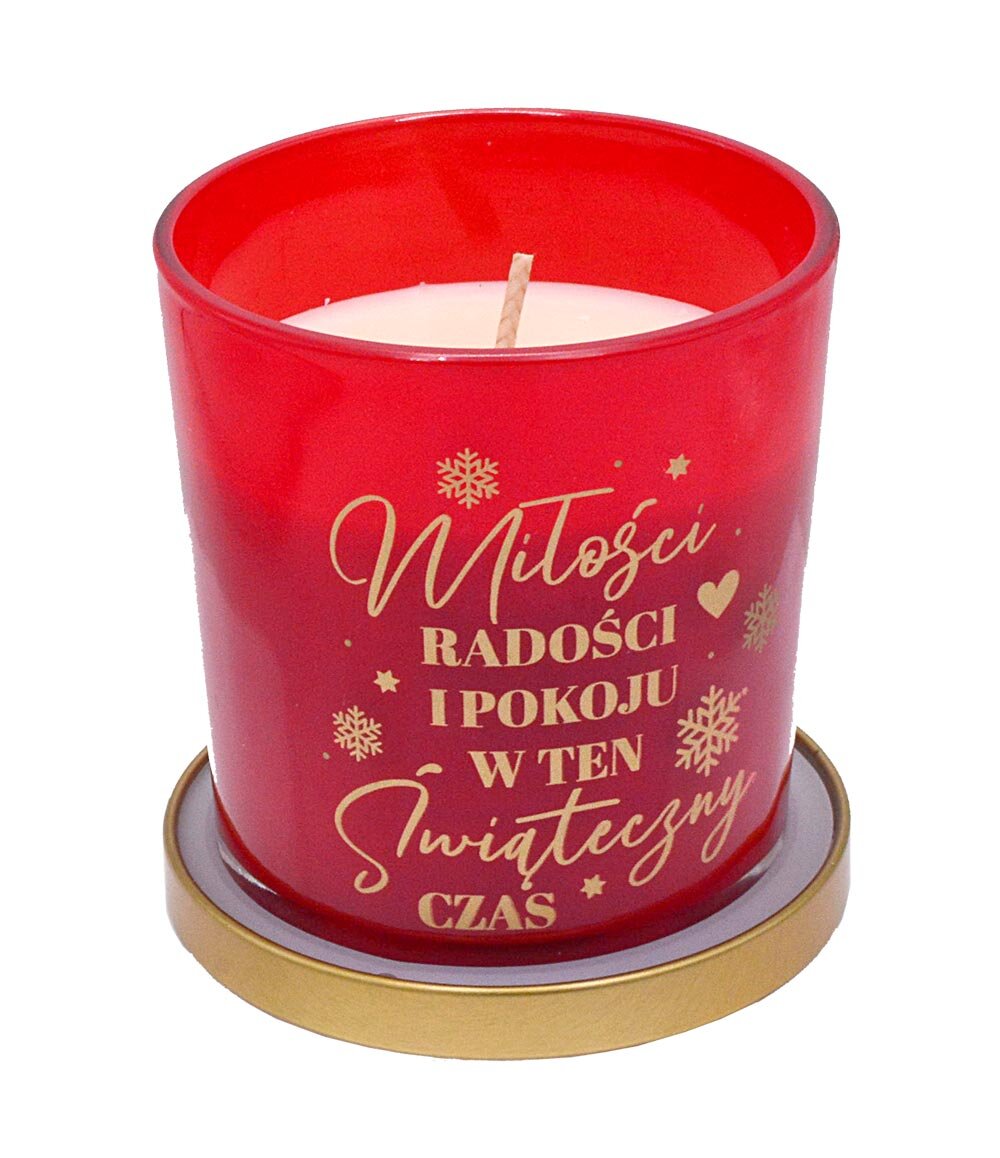 Zapachowa świeca o aromacie grzanego wina ZS-001 "Miłości, radości i pokoju w ten świąteczny czas" Świeca zapachowa w szkle to doskonały sposób na wprowadzenie świątecznego nastroju. Szklane opakowanie jest ozdobione inspirującymi tekstami, co czyni świecę idealnym pomysłem na prezent. Świeca...