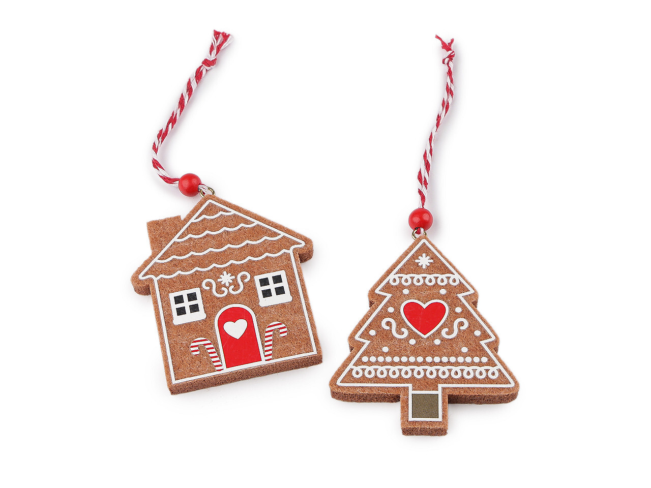 Vánoční perníčky k zavěšení filc koník, stromeček, domeček - 2 ks - 1 hnědá přírodní