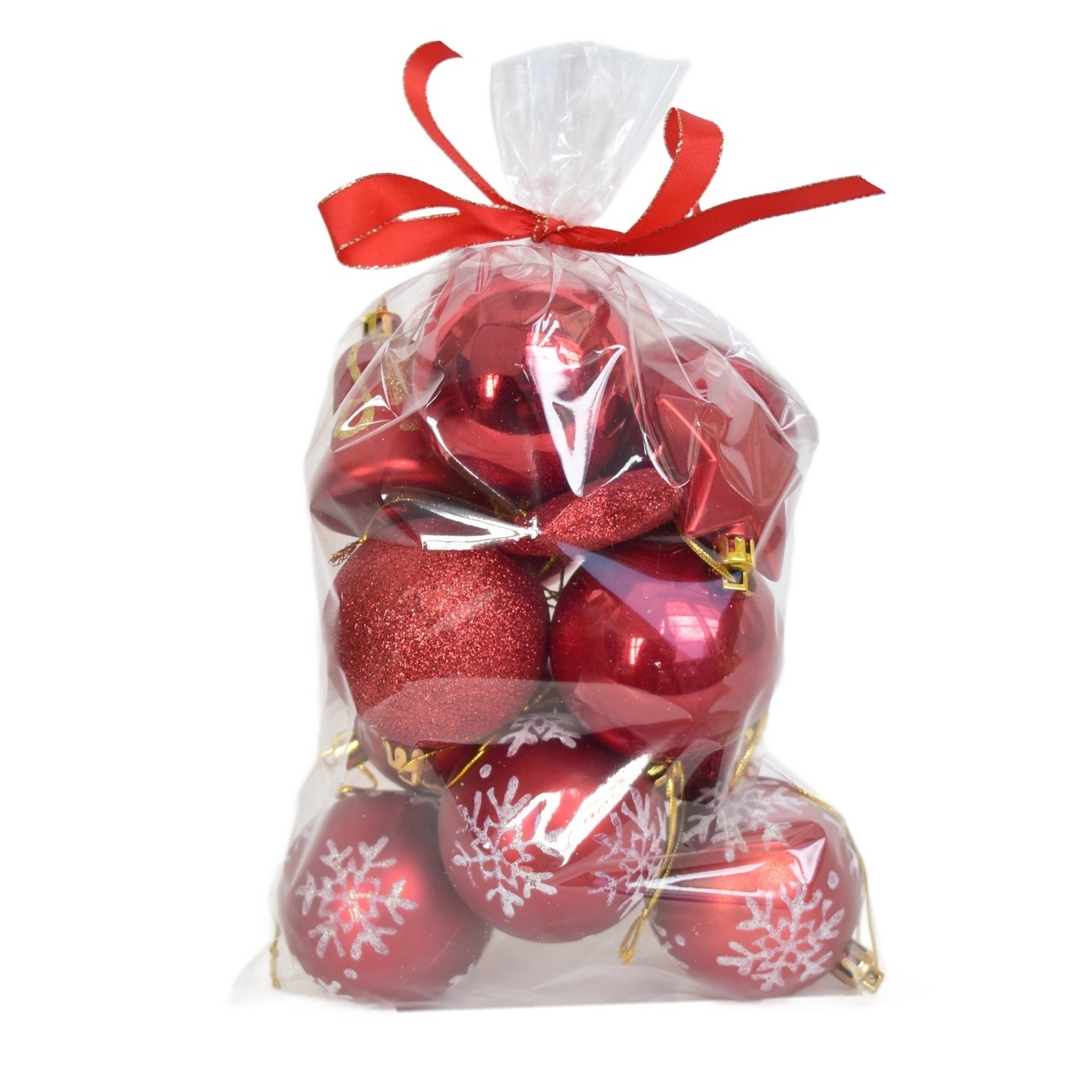 Vánoční koule v sáčku, různé druhy, červené, 14 ks
