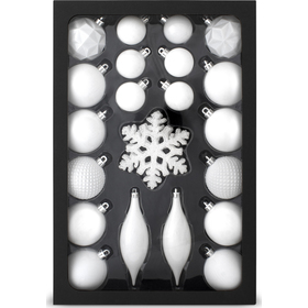 Sada 25 kusů vánočních ozdob v tradiční bílé barvě Vyrobeno z odolného materiálu Balení obsahuje 25 ozdob v několika designech a velikostech - kouličky (6 x 4 cm a 12 x 6 cm) - hvězdy (5 x 11 cm) - rakety (2 x 13 cm) prečítať celé
