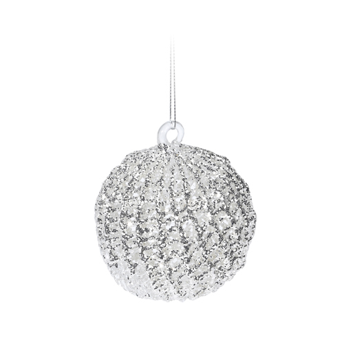 Sklenená guľa zdobená jemnými glitrami - strieborná. Dekor vianočnej gule je veľmi elegantný a hodí sa na každý vianočný stromček. Priemer vianočnej gule je 80 mm. prečítať celé