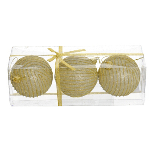 Vánoční koule glitrové, zdobené korálky. Ideální set pro výzdobu Vašeho vánočního stromku. Sada obsahuje 3 ks. Praktické, nerozbitné, přesto s luxusním vzhledem. Barva: zlatá. prečítať celé