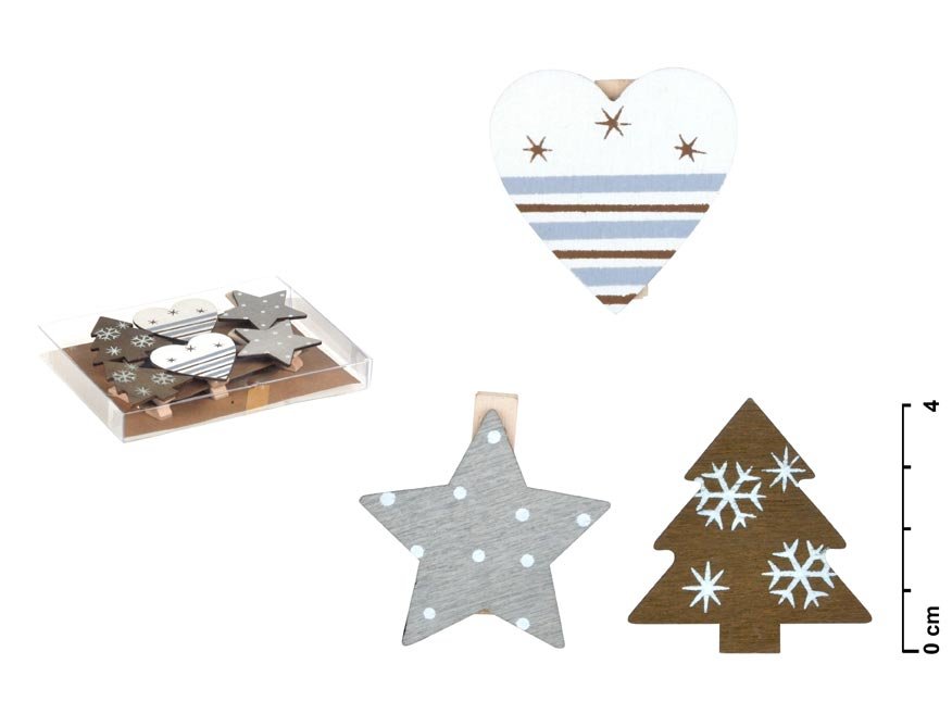 - 6 ks kolíčků (2 ks srdíček, 2 ks hvězdiček, 2 ks stromečků)