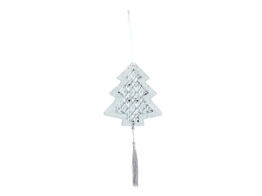Vánoční ozdoba vánoční stromek se závěsem. Ozdoba je vyrobená z betonu. V horní části je očko se stužkou, která umožňuje snadné zavěšení. Ozdobu můžete zavěsit na dveře, okno, nebo jinak zkrášlit vaše bydlení a navodit pocit přicházejících Vánoc.Velikost: 120 mmUvedená cena je za 1 ks.