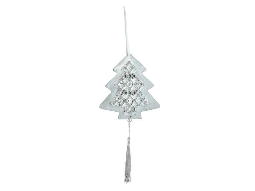 Vánoční ozdoba vánoční stromek se závěsem. Ozdoba je vyrobená z betonu. V horní části je očko se stužkou, která umožňuje snadné zavěšení. Ozdobu můžete zavěsit na dveře, okno, nebo jinak zkrášlit vaše bydlení a navodit pocit přicházejících Vánoc.Velikost: 100 mmUvedená cena je za 1 ks.