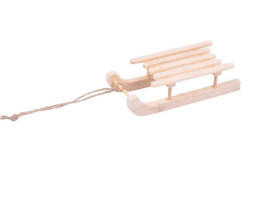 Vánoční dřevěná dekorace sáňky na pověšení v přírodní barvě. Sáňky jsou opatřeny jutovou šňůrkou pro snadné zavěšení. Vhodné na dekoraci vánočního věnce, stromečku nebo větviček ve váze. Navodí tu pravou vánoční atmosféru.