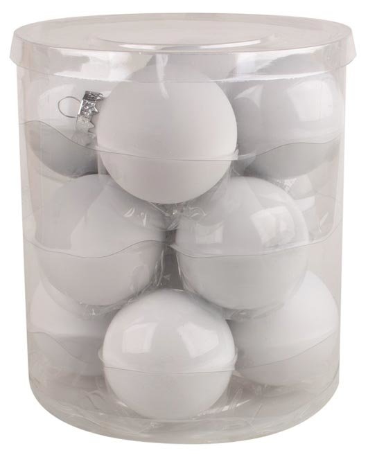Sada 3598 skleněných baněk bílých 5,7 cm, 12ks
