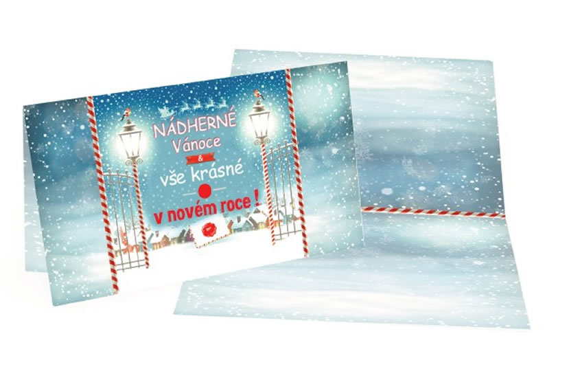 Přání A - Vánoční modré s lucerničkami /8,5x15cm