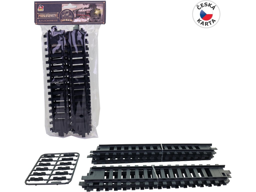 Koleje sada, 22 cm, rovný díl 6 ks, spojky. Doplňky k vláčkodráze. Konečně můžeš měnit nebo prodložit trasu kolejí jak tě napadne. Vyber si ty správné doplňky, které potřebuješ. Balení obsahuje 6 x rovný díl a spojky. Doplň svou dráhu a vyraž za dobrodružstvím. Hračka je určena pro děti 3+....
