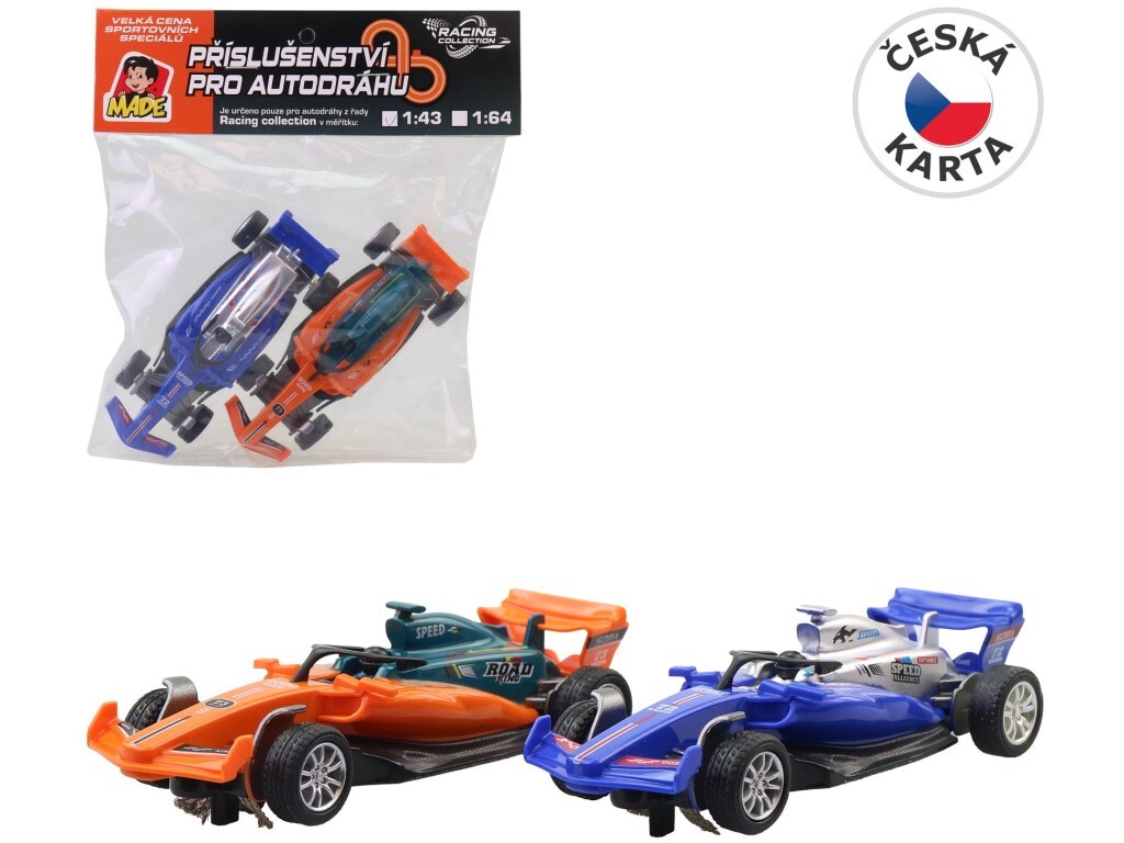 Autodráha náhradní autíčka formule, 2 ks 1:43. Náhradní auta jsou určena pouze pro autodráhu z řady Racing collection v měřítku 1:43. V balení jsou dva kusy ve dvou různých barvách. Hračka je určena pro děti 3+. Materiál hračky je plast. Balení hračky je sáček s kartou. Produkt je určený pro kluky.