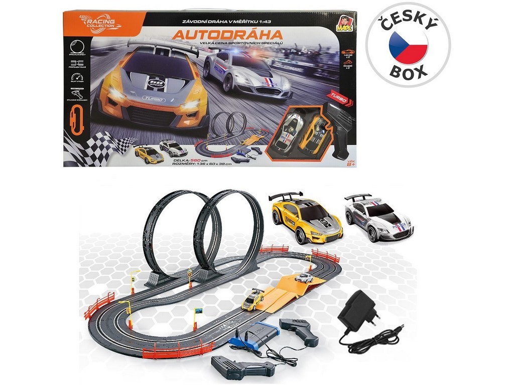 - Obsah balenia: 2 autá, 2 ovládače, EU adaptér, príslušenstvo dráhy