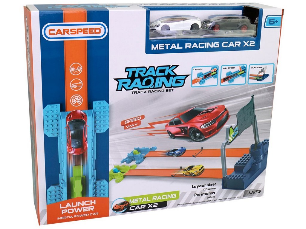 Autodráha, 2 kovová auta, 126 x 24 cmHračka je určena pro děti 6+.Rozměr hračky je 126 x 24 cm.Materiál hračky je kov.Balení hračky je window box.Produkt je určený pro kluky. prečítať celé