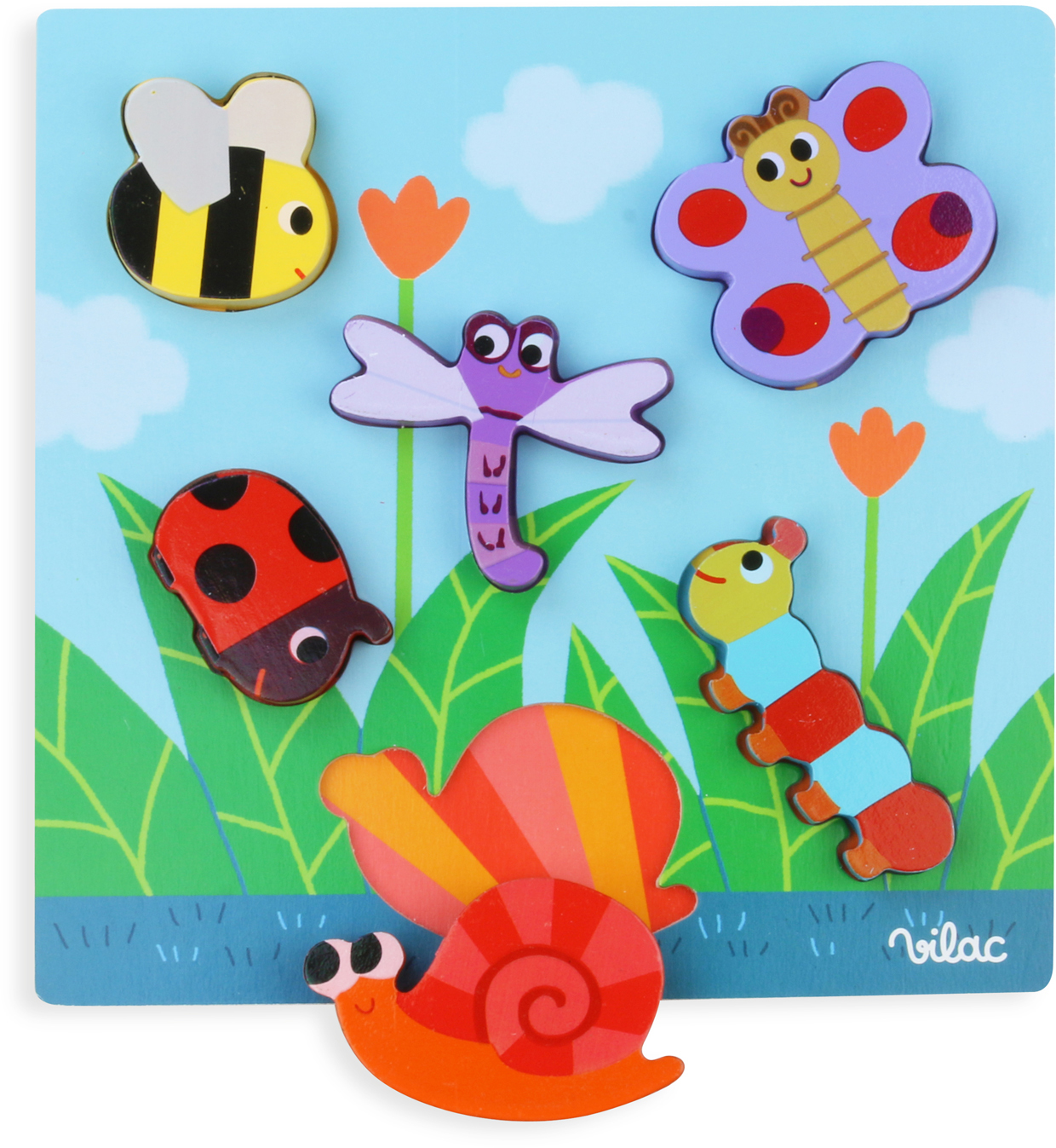 Barevné dřevěné vkládací puzzle s tematikou louky. Šest rozlišných zvířátek po jejichž odebrání děti uvidí barevný vzor, dle kterého budou vědět kam jaké zvíře patří. Hračky Vilac mají značku francouzské agentury ADEME, to znamená, že tyto dřevěné hračky jsou vyráběny ekologicky. Šetří životní...