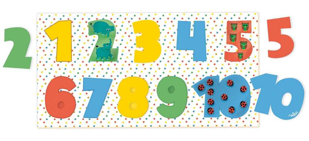 Barevné dřevěné vkládací puzzle čísel od 1 do 10. Deset číslic po jejichž odebrání děti uvidí barevný vzor, dle kterého budou vědět kam jaké číslo patří. Hračky Vilac mají značku francouzské agentury ADEME, to znamená, že tyto dřevěné hračky jsou vyráběny ekologicky. Šetří životní prostředí,...