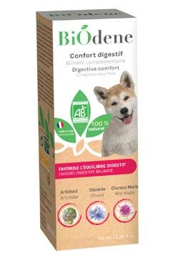 Doplňkové krmivo pro psy z vybraných ekologicky pěstovaných rostlin, které podporují trávení. Receptura BIODENE DIGESTIVE COMFORT je dodávána v tekuté formě, která se snadno používá. Usnadňuje trávení a omezuje trávicí křeče v případě gastrointestinálních potíží, změn chuti k jídlu nebo u psů s...