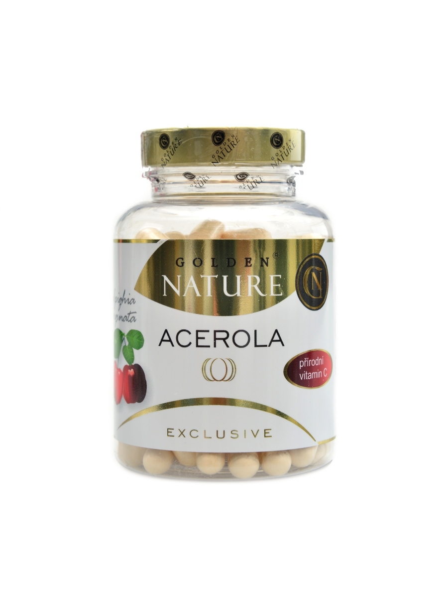 Golden Nature Exclusive Acerola s deklarovaným extraktem standardizovaným na obsah 25% přírodního vitaminu C (125mg/ kapsle přírodního vitaminu C. Acerola nebo také barbadoská třešen či malpígie lysál patří mezi rostliny, jejichž plody jsou jedním z nejbohatších zdrojů přírodního vitaminu C. Pro...