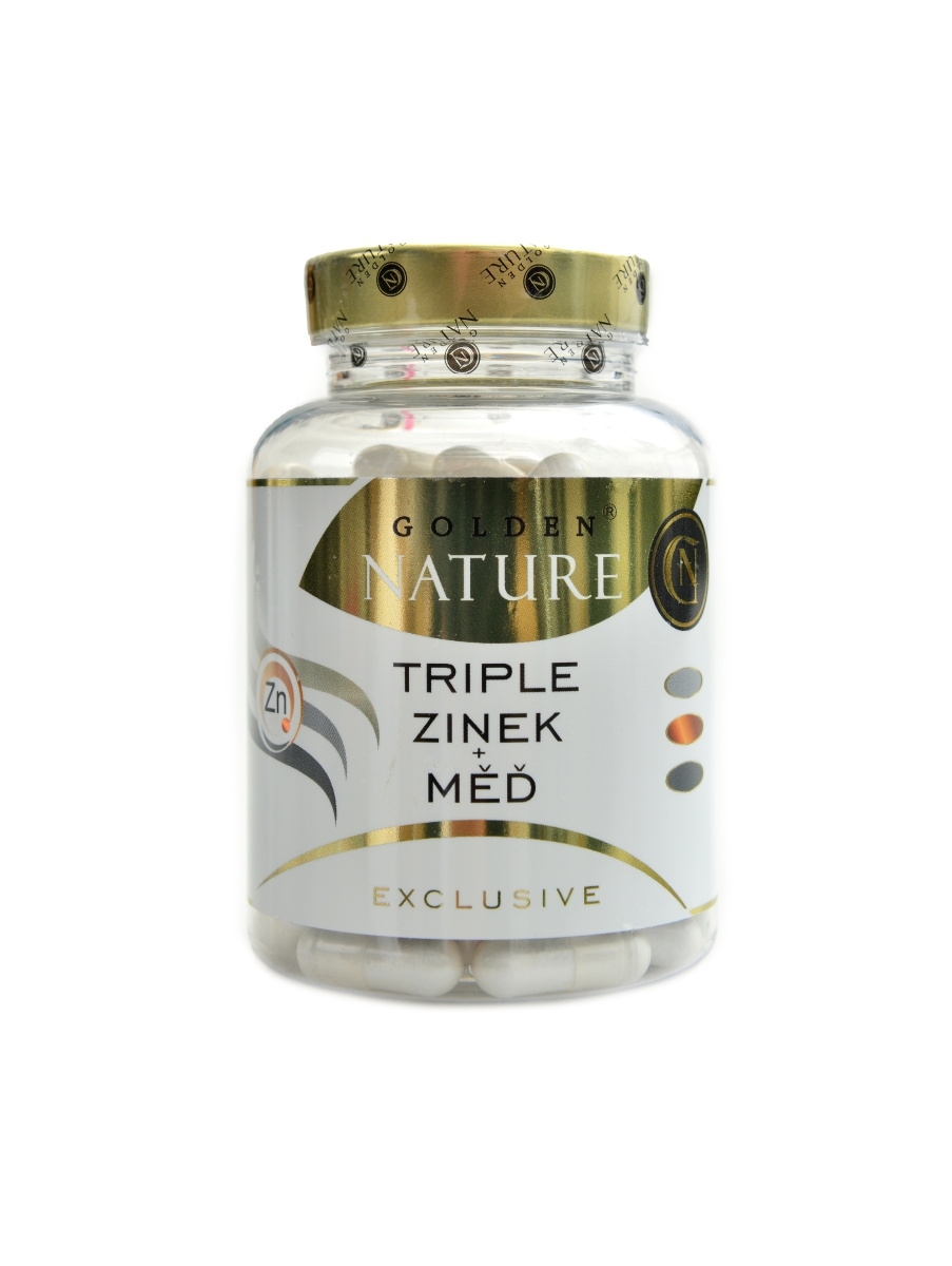 Golden Nature - Exclusive Triple zinok + meď je unikátny doplnok stravy, ktorý poskytuje zinok v podobe troch špičkovo vstrebateľných foriem - bisglycinátu, citrátu a glukonátu. Vďaka tomu vaše telo prijme tento dôležitý minerál efektívne a bez kompromisov.