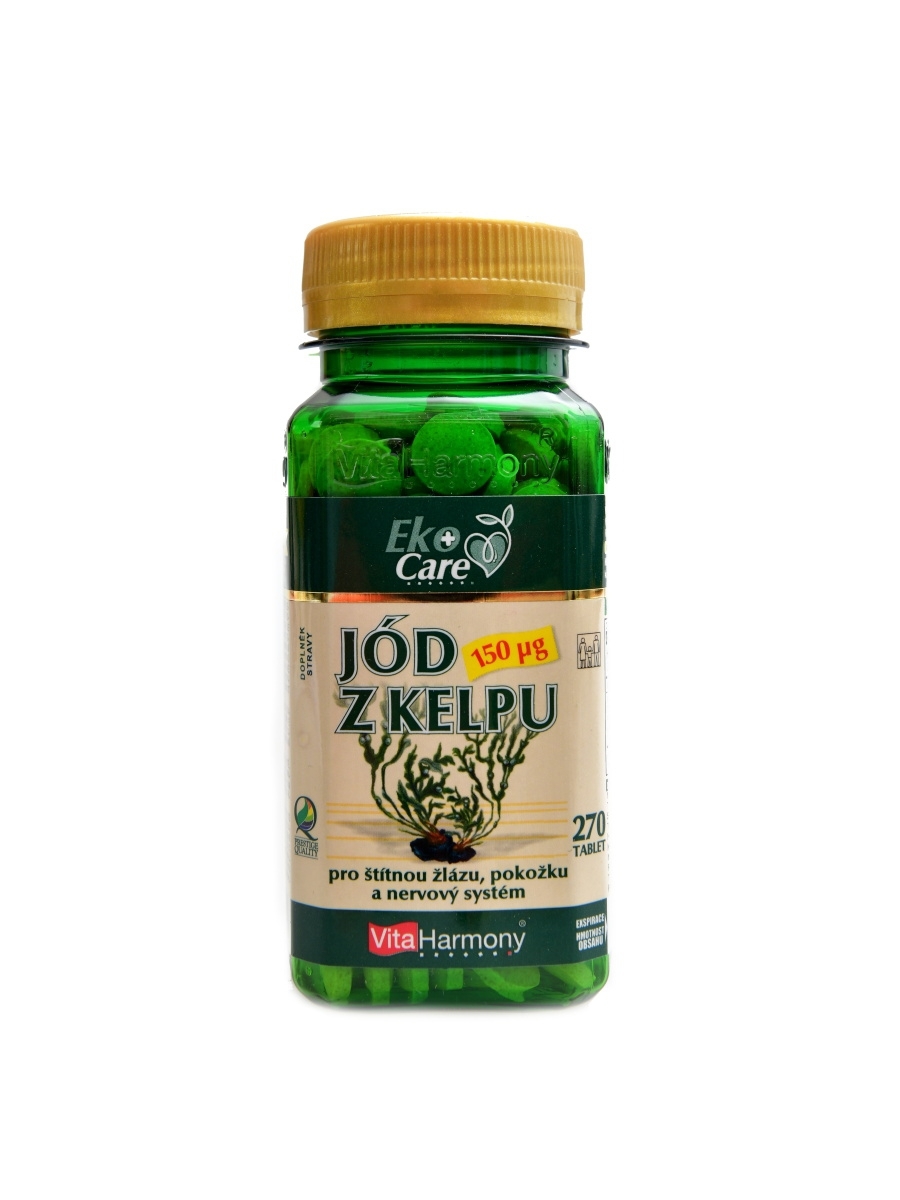 VitaHarmony - VE Jód z kelpu 150 µg ponúka kvalitný doplnok stravy s obsahom jódu z prírodnej morskej riasy kelp, ktorý je zásadný pre správne fungovanie vášho tela. Jód je nevyhnutný pre zdravie štítnej žľazy aj celkový metabolizmus.