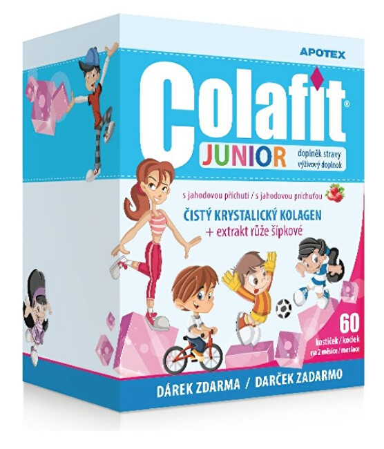 Doplněk stravy Colafit Junior s jahodovou příchutí obsahuje čistý krystalický kolagen a extrakt růže šípkové. prečítať celé