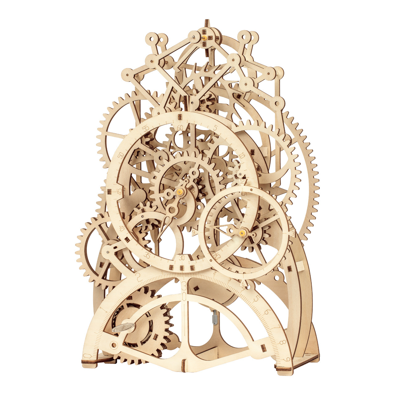 Model je vyrobený z kvalitného prírodného dreva, ktoré mu dodáva elegantný vzhľad a zároveň odolnosť. Po zostavení sa hodiny stanú štýlovým doplnkom vášho interiéru, ktorý zaujme všetkých návštevníkov. Užívajte si pocit uspokojenia z vlastnoručne zostaveného funkčného mechanického diela!