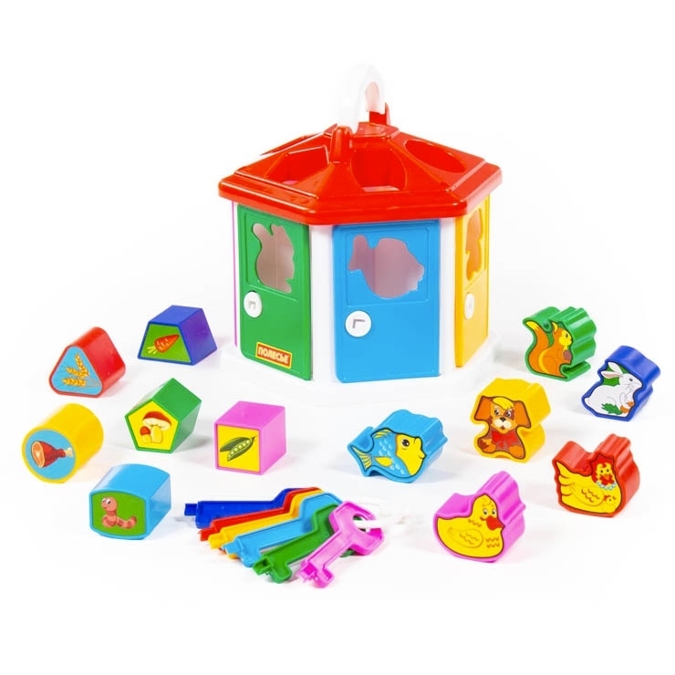 Didaktická hračka - vkládačka, domek z plastu, v balení klíče na dvířka a 12ks vkladačiek. Podporuje rozvoj dovedností, rozličovania tvarů a barev. Vyrobeno v licenci Cavallino. prečítať celé