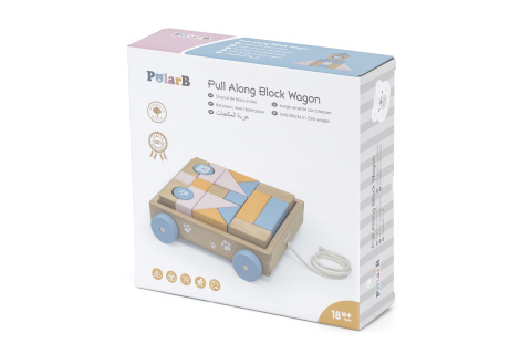 Dřevěný vozík o rozměrech cca 21 x 7 x 22 cm na kolech a se šńůrkou,na kterém lze vozit řevěné kostky různých tvarů - jsou součástí balení.Rozměr balení cca 22 x 22 x 6,5 cm.Věk 18 měs + prečítať celé