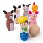 - Sada obsahuje farebné drevené kuželky s motívom farmy