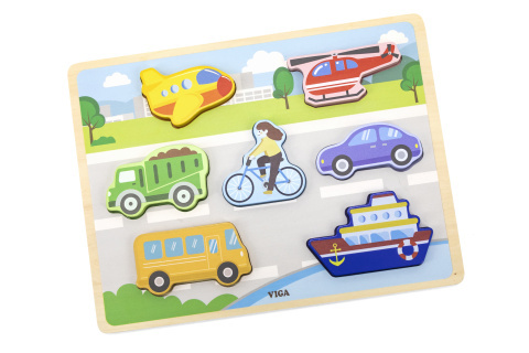 Dřevěná vkládačka s motivem dopravních prostředků. Rozměry dřevěné desky cca 30 x 22,5 cm. Rozměry balení cca 30 x 25 x 2 cm. Věk 18m+ prečítať celé