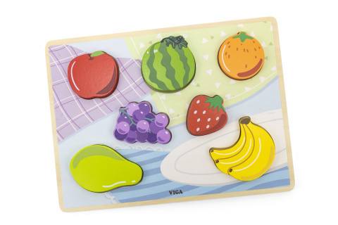 Dřevěná vkládačka s ovocem. Rozměry dřevěné desky cca 30 x 22,5 cm. Rozměry balení cca 30 x 25 x 2 cm. Věk 18m+ prečítať celé