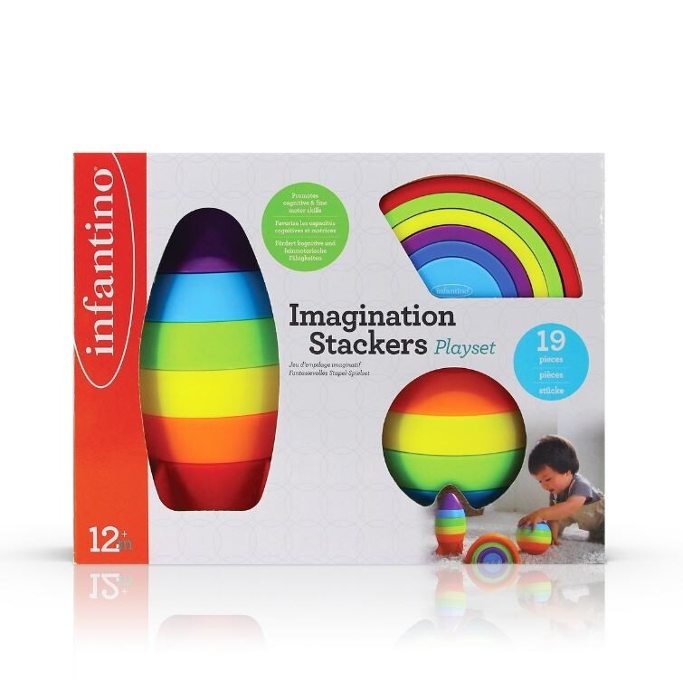 Zestaw 3 zabawek do nakładania i budowania (łącznie 19 elementów): Tęcza 7 elementów, można z nich ułożyć nie tylko tęczę, ale mnóstwo innych kształtów. Doskonała zabawka do nauki pierwszych podstawowych kolorów Kula 6 elementów, Każdego elementu można użyć również osobno, ponieważ zawierają one...