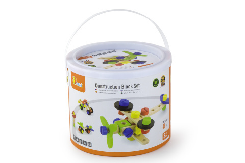 Dřevěná stavebnice konstruktér v kyblíku. Obsahuje 48 dílků a obrázkovou brožuru s návody na stavění. Rozměry balení cca 18 x 15 cm. Věk 3+ prečítať celé