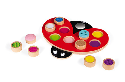 Senzorická dřevěná hračka Beruška s různými povrchy Janod I am learning touch