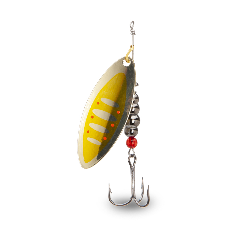 Klasická rotační třpytka s podlouhlým listem. Je vyrobena z kvalitního materiálu a doplněna kvalitními komponenty. Je osazena háčky Mustad. Lopatka má z každé strany jiný design.hmotnost 14 gvelikost 5 prečítať celé