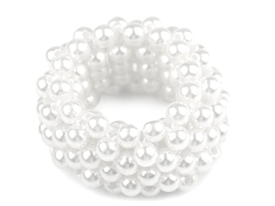 Perlová gumička / ozdoba do vlasů - 12 ks - 1 bílá perlová