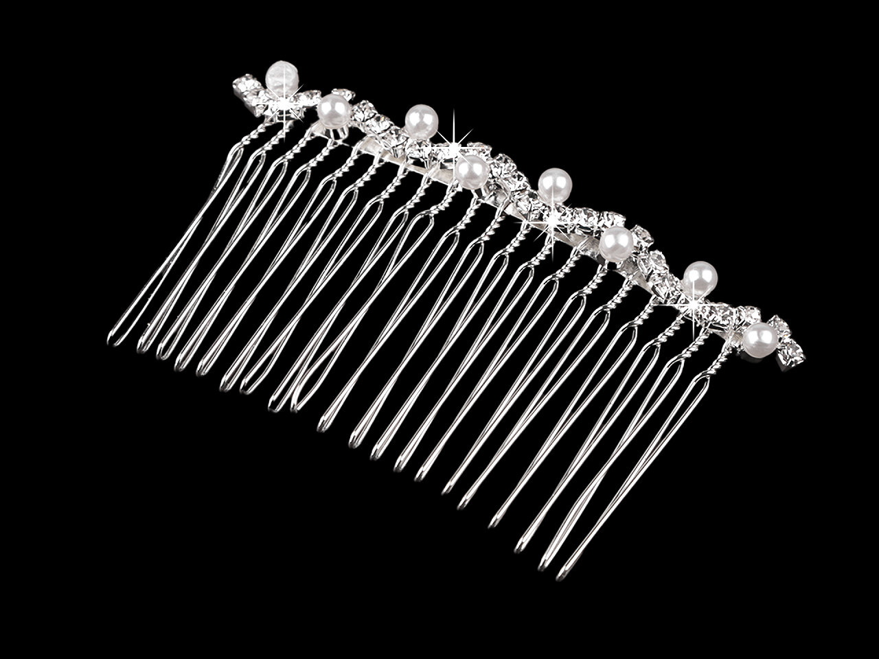 Hřeben do vlasů s broušenými kamínky a perlami - 1 ks - crystal bílá