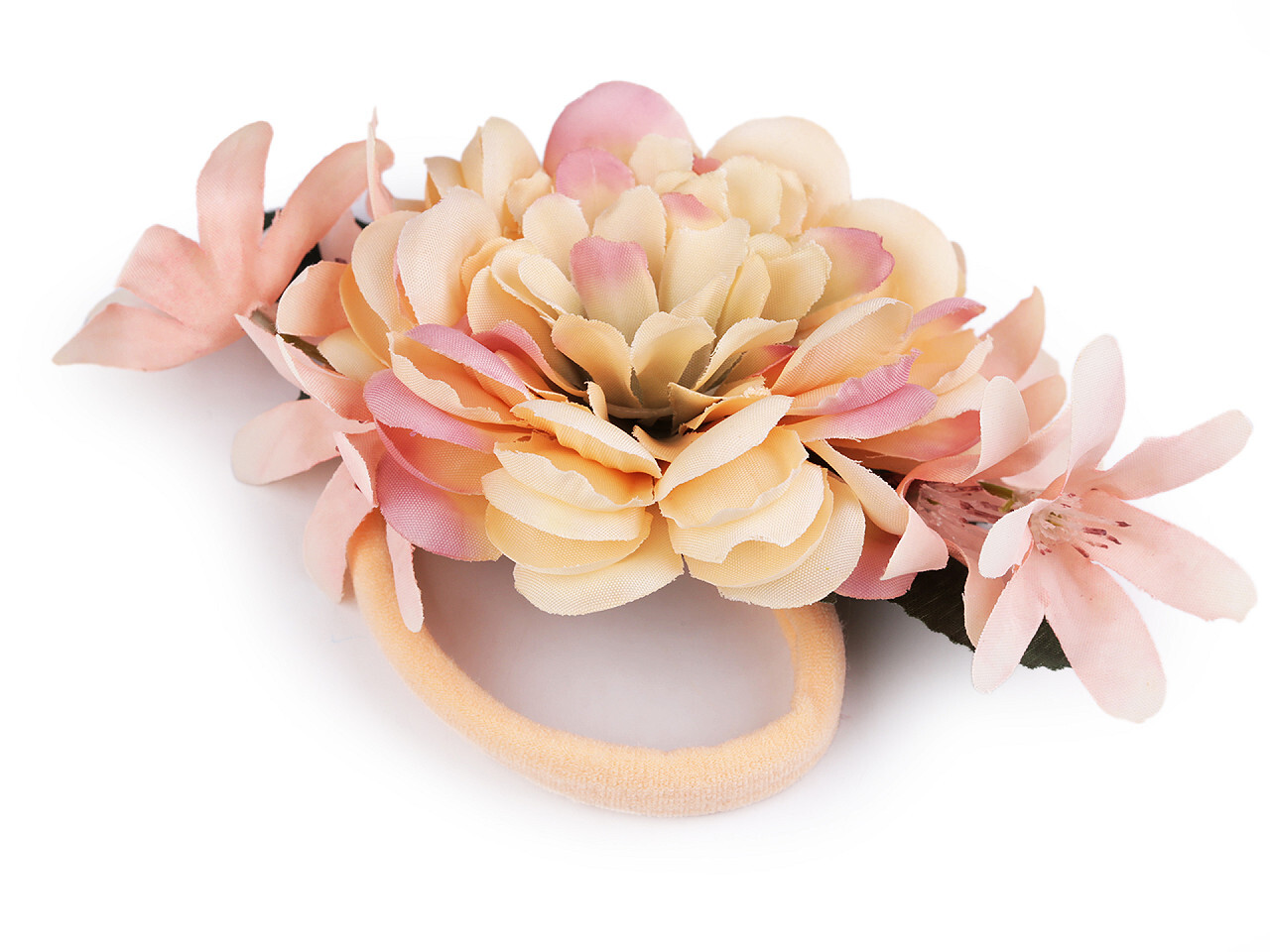 Gumička do vlasů s květy - 1 ks - 2 lososová