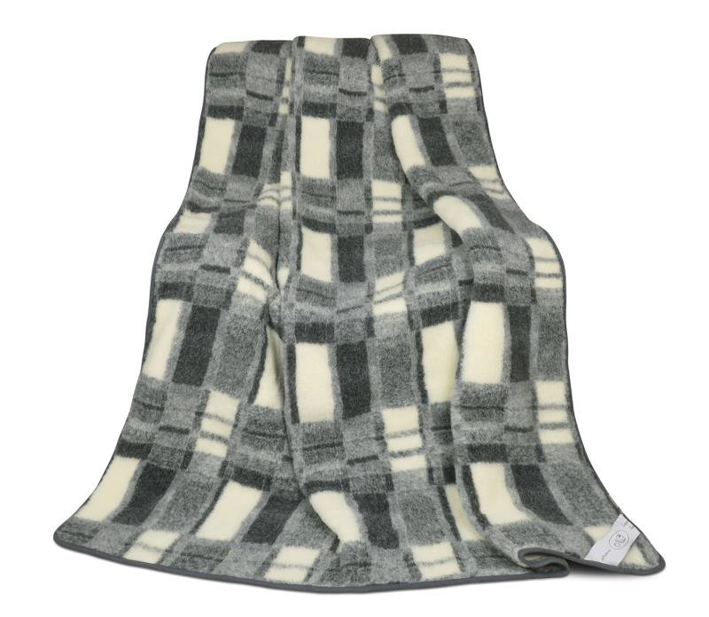 Evropské merino deka geometrie 450g/m2 - šedé káro - 155x200 cm