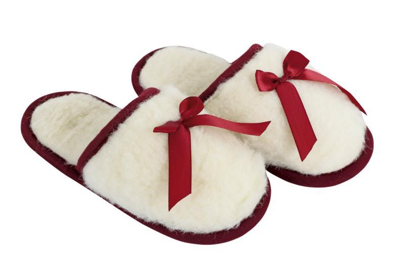 Australské meríno pantofle 520g/m2 - bílý beránek/červená stuha - velikost 41-42