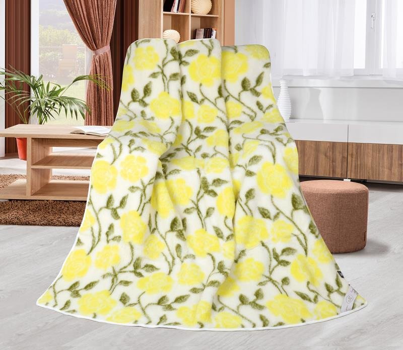 Evropské merino deka geometrie 450g/m2 - žlutá růže - 155x200 cm