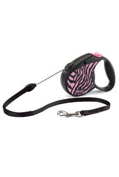 Vodítko FLEXI Safari zebra S lanko 5m/12kg růžová
