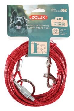 Univerzální uvazovací lanko umožní zvířeti volný pohyb bez rizika útěku v prostorách, kde jej nelze volně ponechat. Vybaveno ocelovou karabinou. Vyrobeno z odolných materiálů nejvyšší kvality - ocelové lanko potažené červeným plastem. Zaručí bezpečnost psa i ostatních uživatelů daného prostoru, je vhodný pro psy vážící méně než 45 kg.