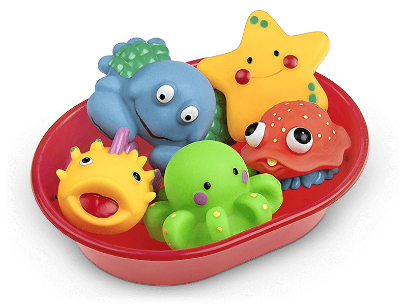 Vodní zvířátka v misce do vany