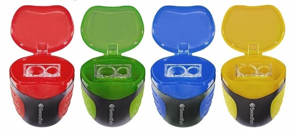 Temperówka Podwójna z Klapką. Posiada dwa otwory do ostrzenia o średnicy 8 i 10,5 mm. Duży pojemnik sprawia, że można ostrzyć w każdym miejscu nie pozostawiając bałaganu. Zewnętrzna klapka zapobiega wysypywaniu się wiórek. Wygodna w użyciu dzięki ergonomicznemu kształtowi i gumowym obrzeżom. Dostępna w 4 atrakcyjnych kolorach.