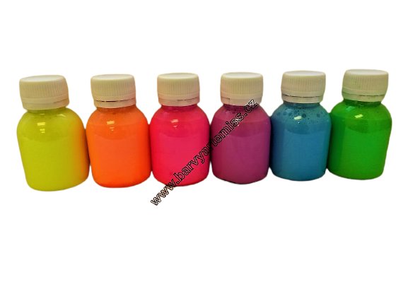 Speciální barvy, které svítí pod UV lampou (stejný efekt jako u bankovek). Pokud se barvy nenasvítí mají stejné odstíny jako zvýrazňovače. Po nasvícení UV lampou (např. na diskotéce) barevně svítí.