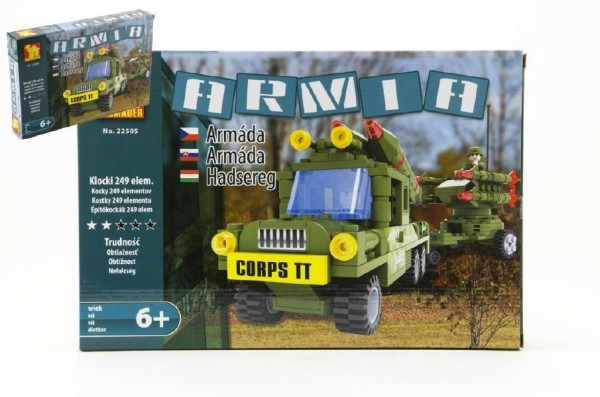 Stavebnice Dromader Vojáci Auto 22505 249ks v krabici 32x21,5x5cm