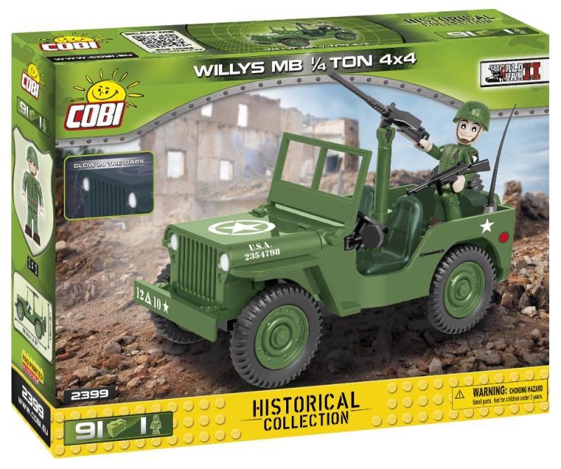 Postavte si model vojenského osobního auta americké konstrukce z období 2. světové války. Její příbuzná varianta, vyráběná na základě licence v závodech Ford, byl Ford GPW. Oba modely byly široce používány všemi spojeneckými silami během války. Balení obsahuje 91 kostek stavebnice a 1 figurku vojáka.