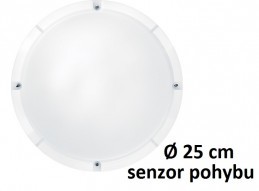 Přisazené LED svítidlo řady LARA v bílé menší variantě o průměru 25 cm s integrovaným mikrovlnným senzorem má širokou škálu použití v interiérech nebo ve venkovním prostředí. Je skvělou volbou jako kvalitní odolné úsporné osvětlení ve veřejných či komerčních prostorách na chodbách, schodištích...