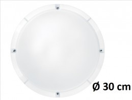 Kulaté nástěnné/ stropní LED svítidlo řady LARA v bílém větším provedení o průměru 30 cm má širokou škálu použití jak v interiérovém, tak ve venkovním prostředí ve veřejných či komerčních prostorech, na chodbách, schodištích, v obchodních centrech či v kancelářských budovách. Je možné ho využít...