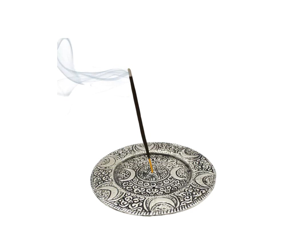 Stojánek na vonné tyčinky v podobě symbolu Měsíce a Pentagramu.Rozměry: průměr 11 cm prečítať celé